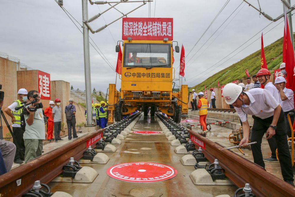 6月12日,随着最后一节500米长轨铺设完成,赣(州)深(圳)高铁广东段与江西段在广东省河源市和平县下车镇和一村成功接轨,标志着赣深高铁全线正线轨道铺设完成,为年底顺利通车打下坚实基础。(中新网)