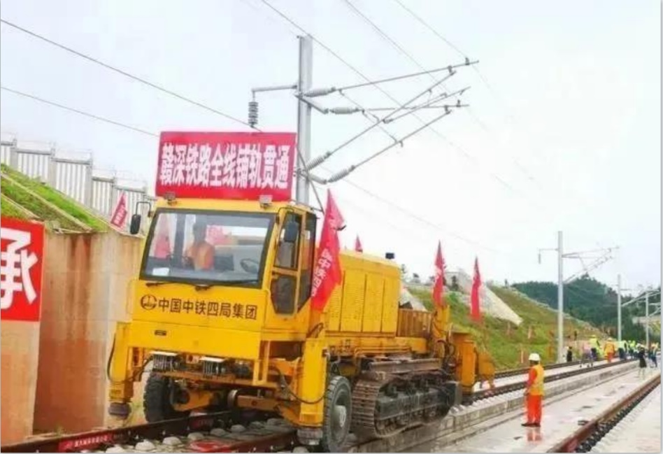 12日10时许,在广东省河源市和平县和一村的施工现场,随着广东段最后一节500米钢轨稳稳地铺在无砟轨道板上,赣深高铁全线轨道铺设正式贯通,为粤赣两地在今年年底进入两小时交通圈奠定了基础。