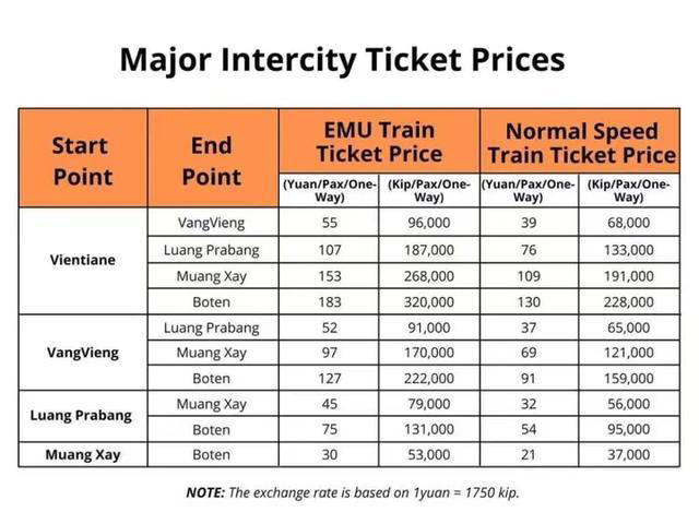 2021年10月16日,老挝媒体消息,发出中老铁路老挝主要城市站点和票价。