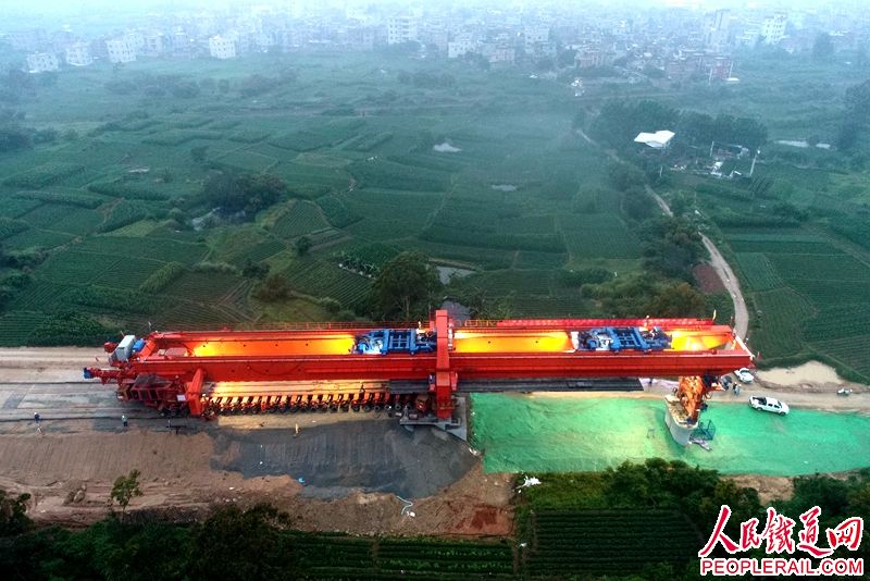 福厦高铁泉州境内陈芹大桥架梁现场。