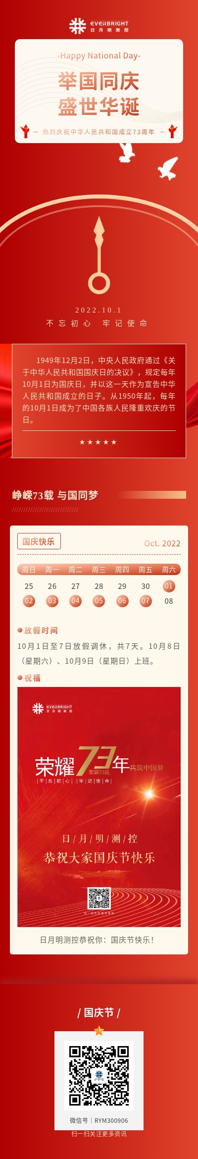 峥嵘73载,日月明测控祝大家国庆快乐!